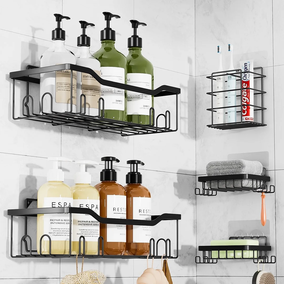 Adhesive Shower Caddy Organizer Shelves Rack - 5 Pack Corner Bathroom Storage Organization, Home & Kitchen Decor Inside RV Accessories, Hanging First Apartment Household Camper Essentials