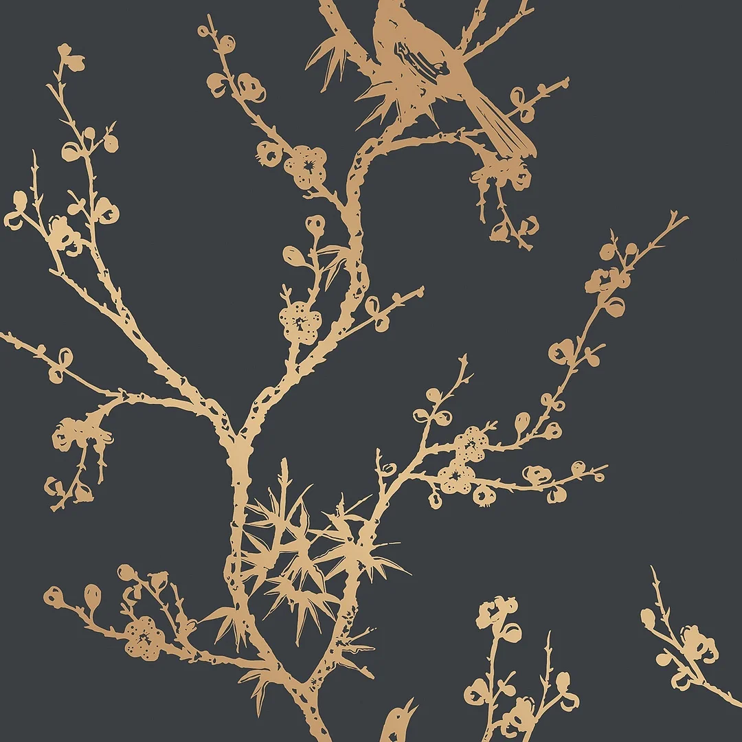 Birds and branches lend a natural touch to any room. This modern removable wallpaper print, in a black and metallic gold colorway, is ideal for accent walls and any surface needing a bold look. Bird Watching is part of the Cynthia Rowley collection. Tempaper & Co. offers individuals the freedom to be creative when decorating with wallpaper. Easily embrace pattern, texture, and color in your interior without the worry of a long-term commitment. To apply our self-adhesive wallpaper, peel away the backing to expose the water-based adhesive. Press onto a smooth surface and align the pattern from panel to panel. Tempaper peel and stick, removable wallpaper is Class A fire-rated for flame spread and smoke developed. The product works best when applied to surfaces that have been primed and painted with a satin or semi-gloss finish. Applications on flat and matte paints and textured surfaces are not recommended.