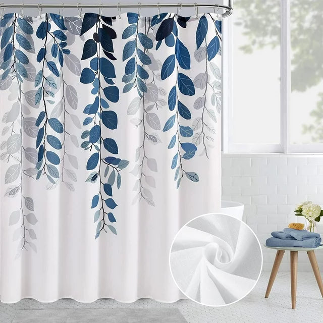 Blue Eucalyptus Shower Curtain for Bathroom, Floral Watercolor Leaves Shower Curtain With 12 Hooks, Waterproof Botanical Nature Fabric Bath Shower Curtain, 72 Inch x 72 Inch