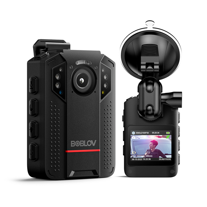 BOBLOV KJ24 Body Camera, 128GB 4K GPS Bodycam with Car Suction Mount
