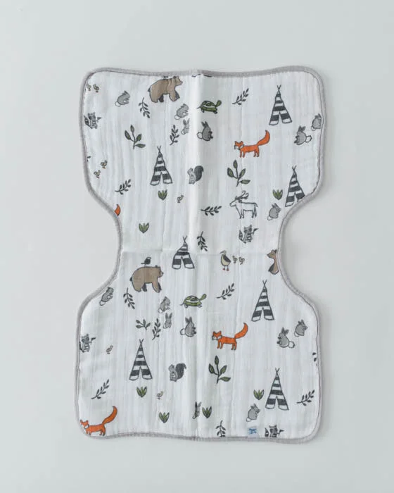 There's no use crying over spilled milk. With 4 absorbent layers of cotton muslin and an innovative shape, our burp cloth keeps you clean and dry while baby's snuggled tight.