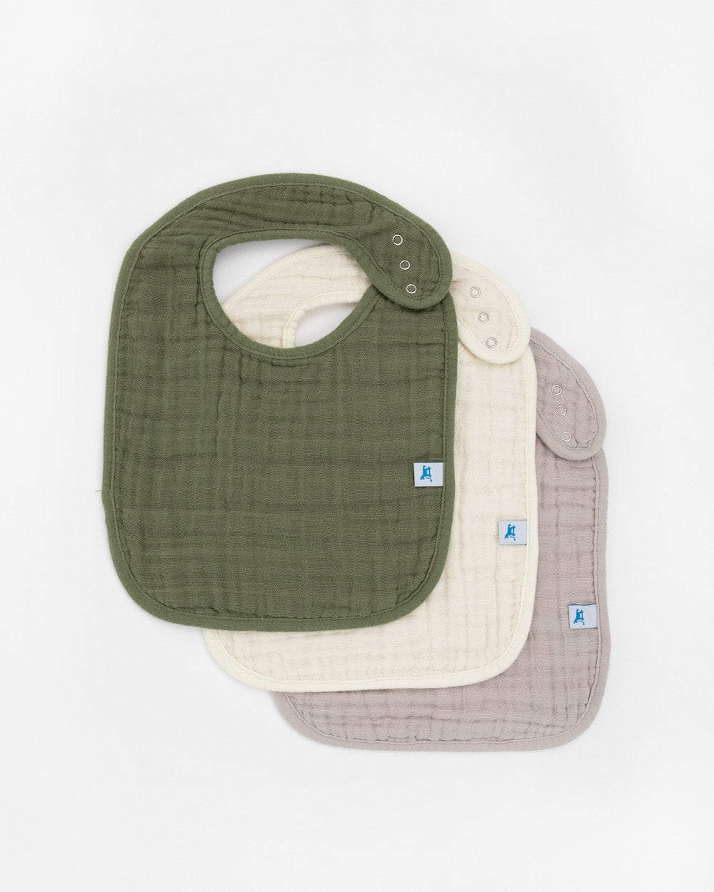 Cotton Muslin Classic Bib 3 Pack - Fern 2