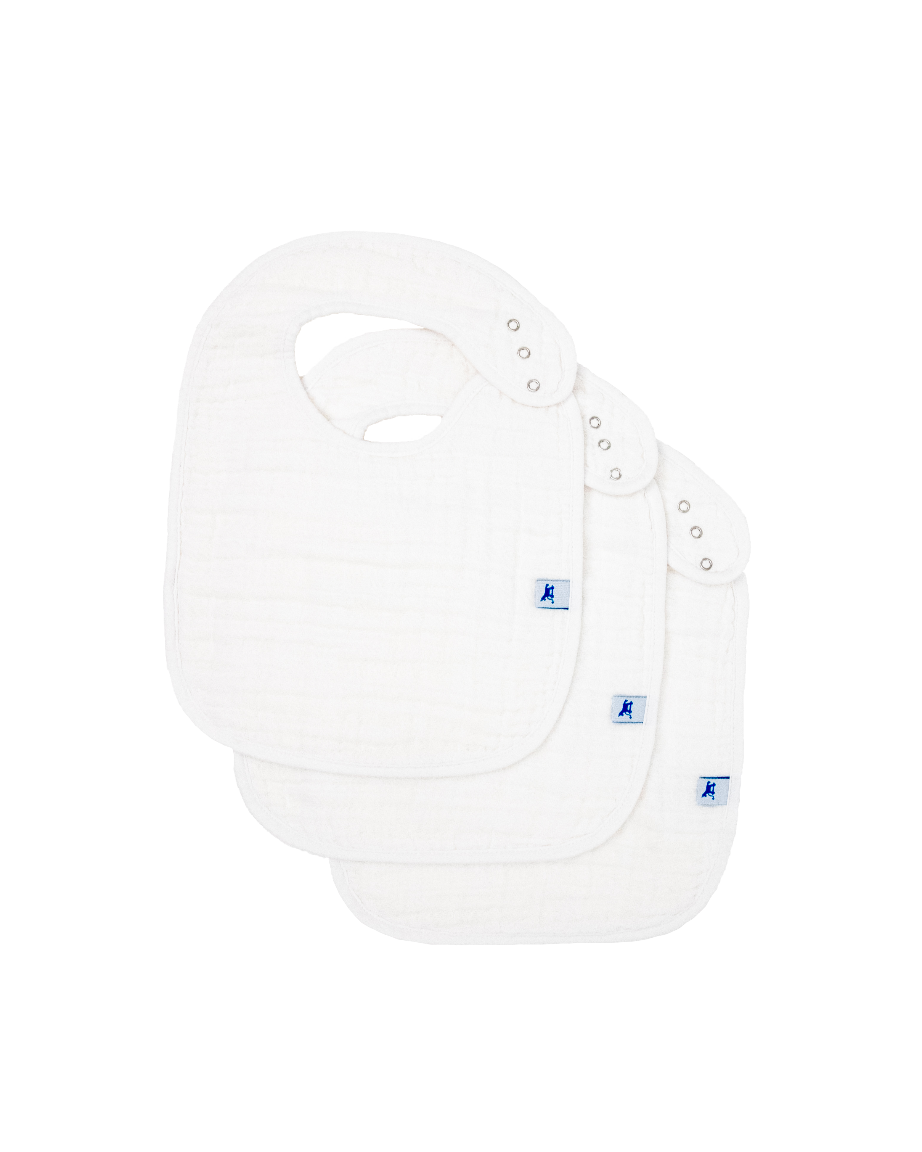 Soft and absorbent, our multi-layer bibs are built to handle all of baby's spills and messes. Featuring three unique, hand-painted prints and a snap-on function to ensure a snug fit that grows with your baby.