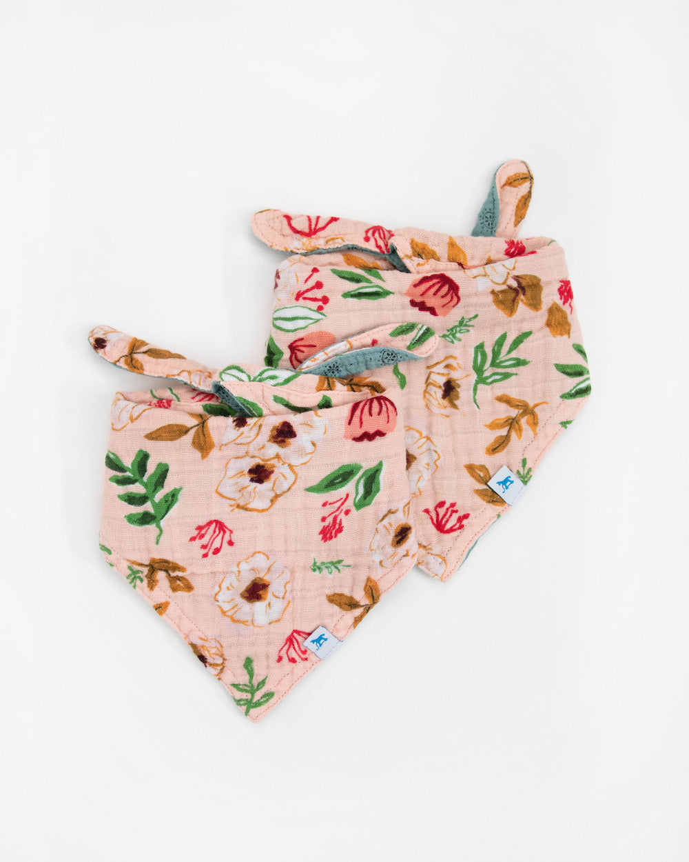 Cotton Muslin Reversible Bandana Bib 2 Pack - Vintage Floral
