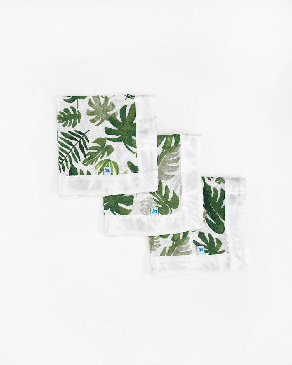 Cotton Muslin Security Blanket 3 Pack - Tropical Leaf