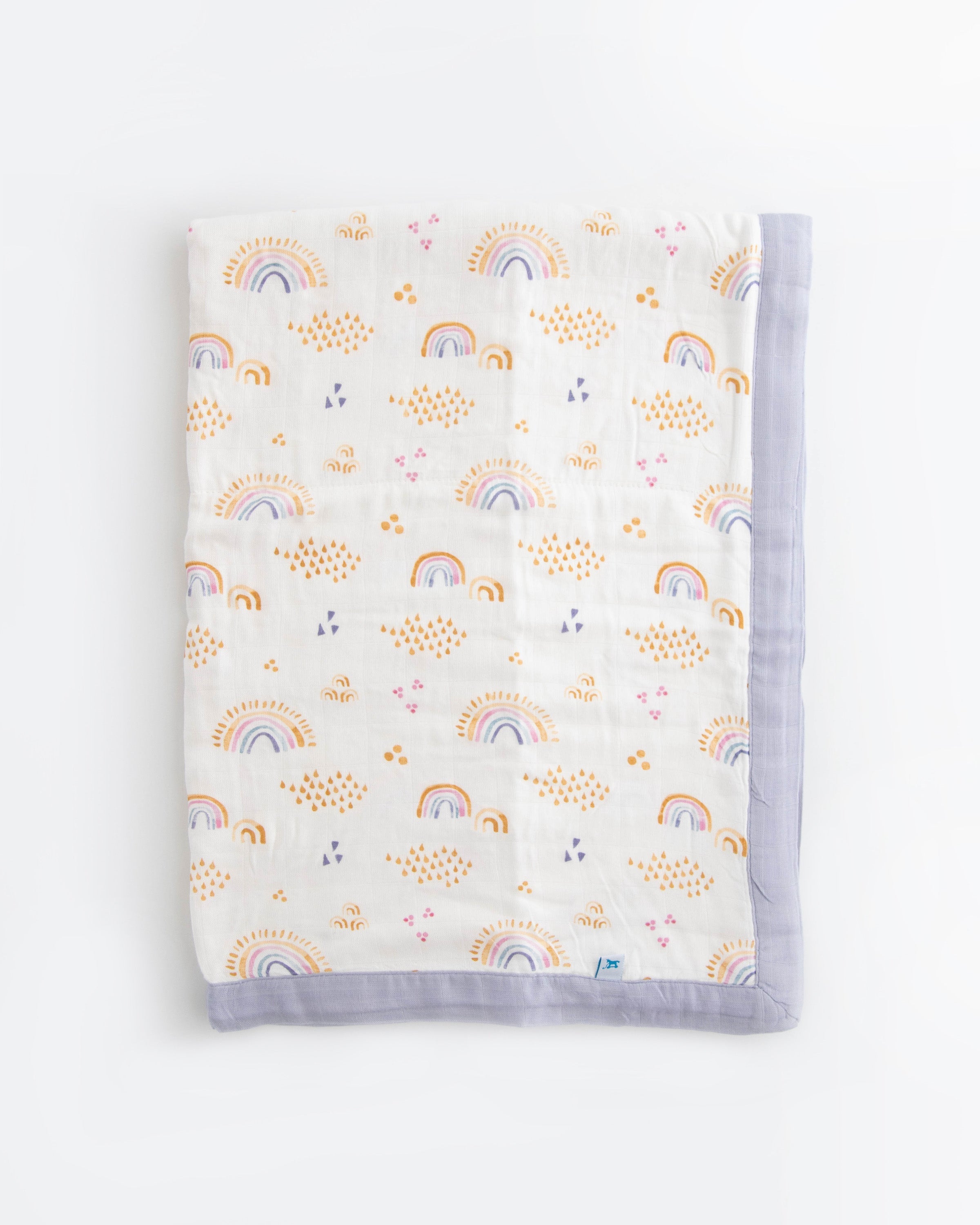 Deluxe Muslin Baby Quilt - Rainbows & Raindrops