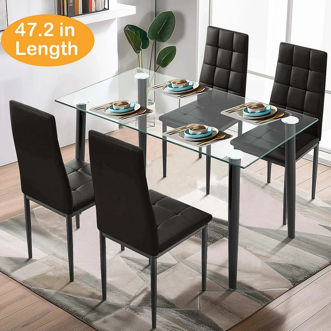 - SPACIOUS DINING SET FOR 4 --ย Table Size: 47.2x27.6x30.7in. The glass tabletop offers a spacious surface area for dining and entertaining. The versatile design also makes it suitable for various dining occasions, from everyday family meals to hosting dinner parties. This glass table set is perfect for a kitchen dining table, coffee/coffee table, living room table, or office desk.ย