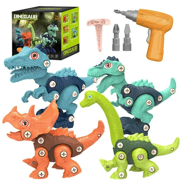 DIY Dinosaur Toy Set for Kids 3-5, Realistic Jurassic Dinosaur Play Set, Learning Educational Interactive Dinosaur Sets with Electric Drill, Great Gift for Boys & Girls