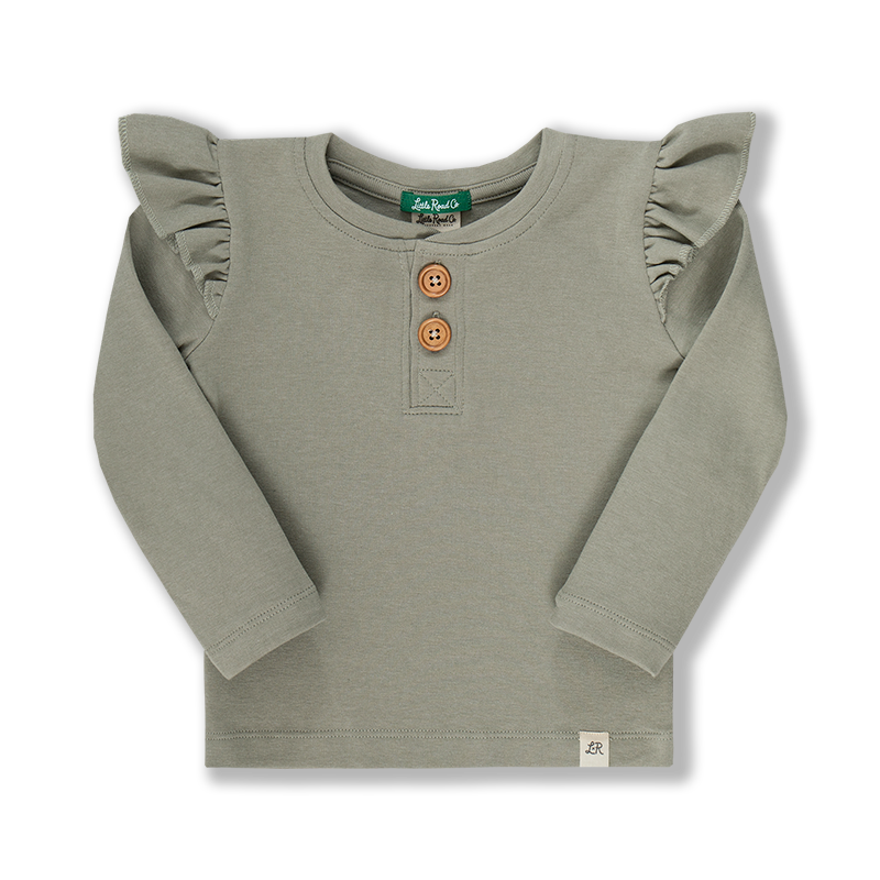 Harbor Gray Long Sleeve Button Flutter Top
