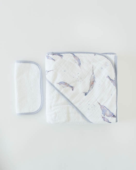 Infant Hooded Towel & Washcloth Set - Narwhal