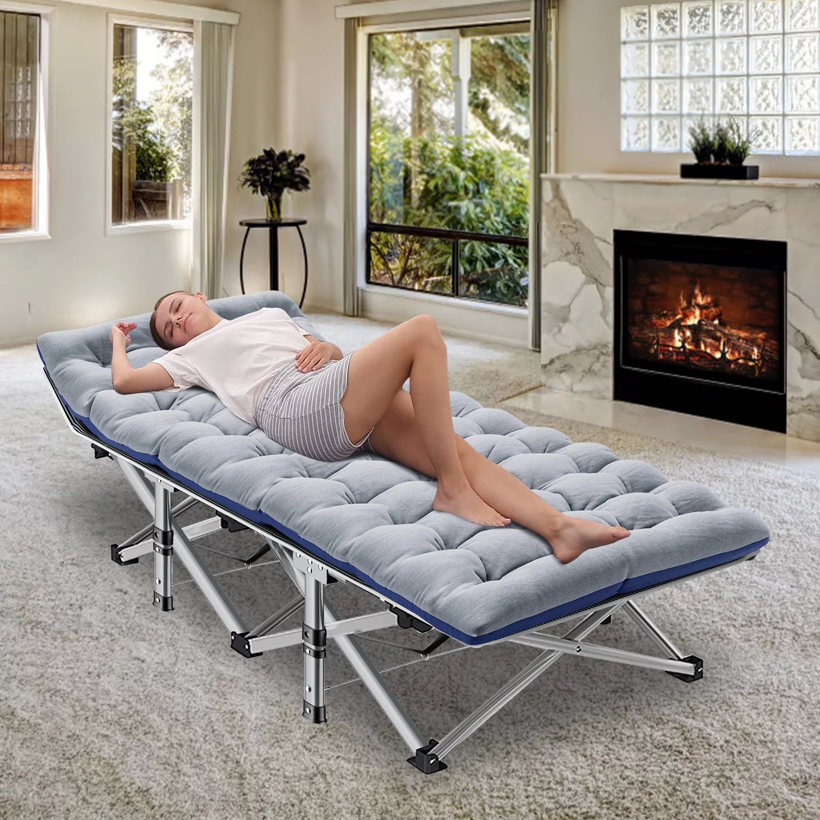 You can use this sleeping bed indoors and outdoors, such as office nap, travel rest or sunny beach use. It can also be used as a makeshift bed when guests are visiting.