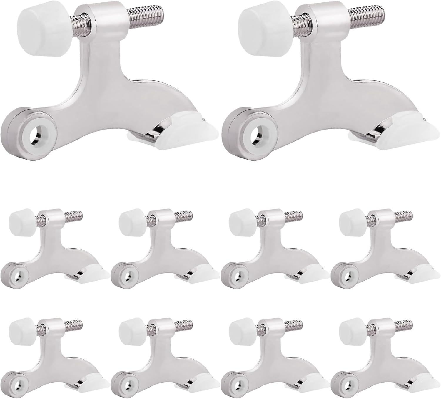 OBTANIM 8 Pack Hinge Pin Door Stopper Heavy Duty Metal Adjustable Door Stops with Rubber Bumper Tips (Silver)