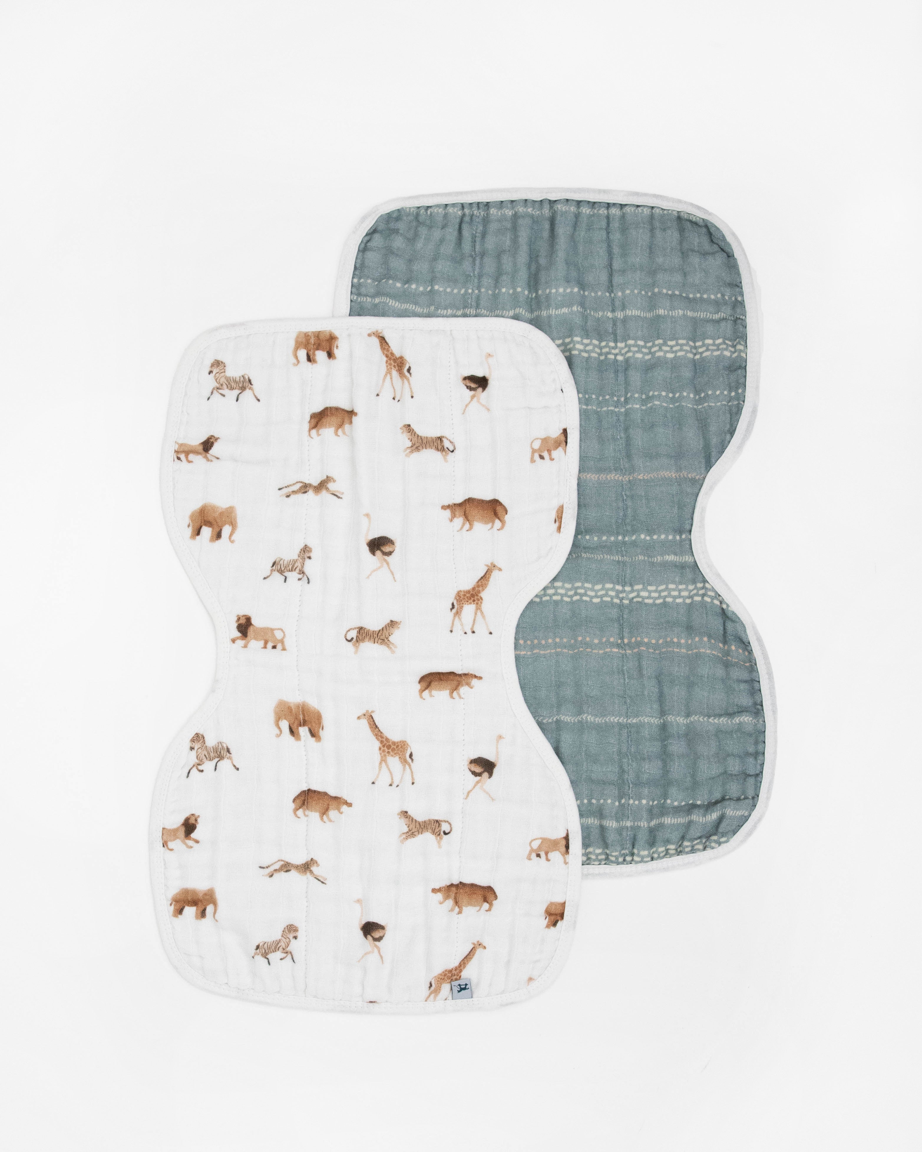 Organic Cotton Muslin Burp Cloth 2 Pack - Animal Crackers + Stillwater Stitch