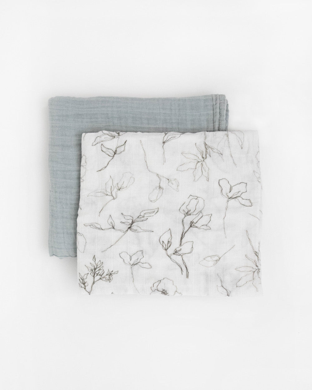 Organic Cotton Muslin Swaddle Blanket 2 Pack - Pencil Floral