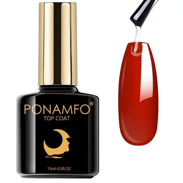 Ponamfo Gel Nail Polish Top Coat- 15ml No Wipe Top Coat, High Gloss Shiny Long Lasting Top Gel for Clear Nail Gel and Acrylic Nails, for Home DIY and Nail Salon