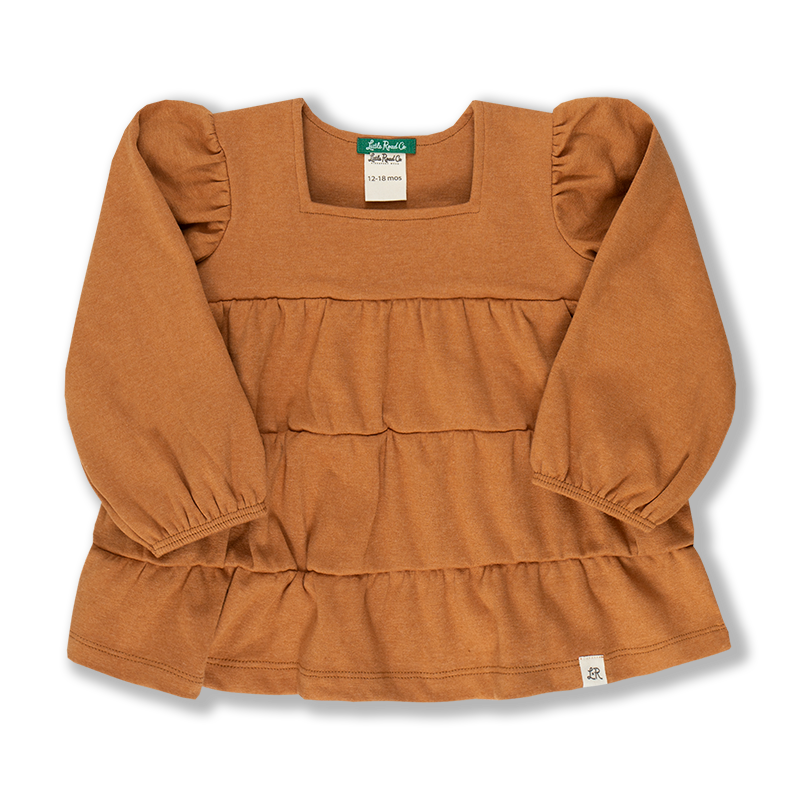 Comfy meets style in our new Golden Harvest collection! Colors are coordinated to mix and match throughout the entire line! Materials include 56% cotton, 38% polyester, and 6% elastane ribknit fabric. Material is not pre-shrunk so please allow up to 10% shrinkage if machine-dried. Made in India.