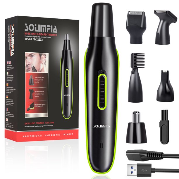 【POWERFUL,PAINLESS AND SAFE】This 5-in-1 ear and nose hair trimmer features a hypoallergenic double-edge blade system, which excels at catching long nose hairs quickly and precisely. It will trim hairs to the right length to avoid social embarrassment.