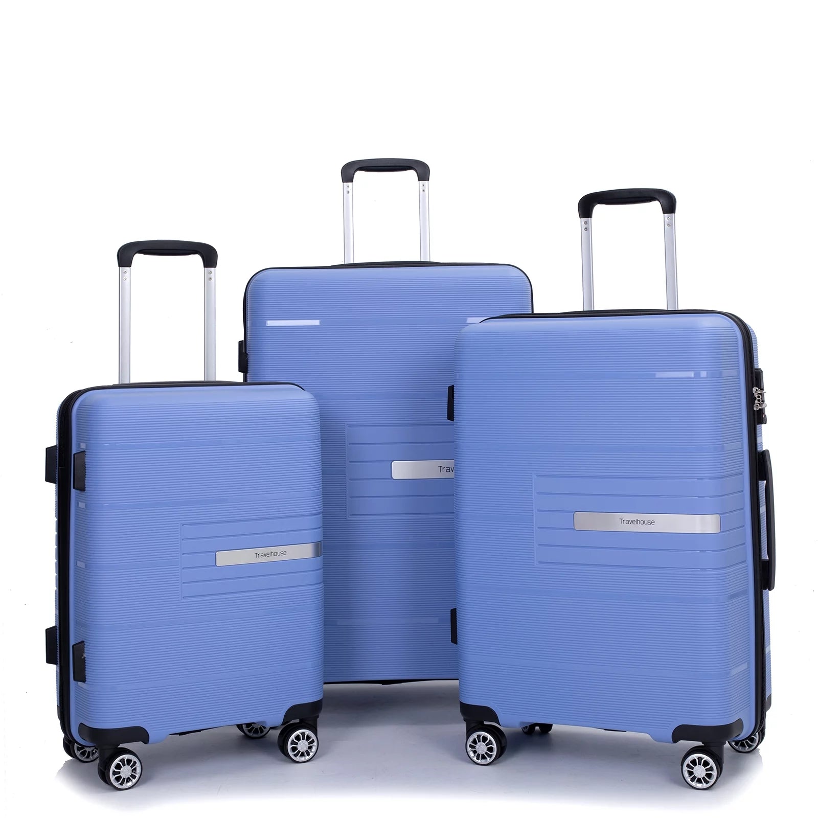 Tripcomp 3 Piece Luggage Sets, Hard shell Carry On Luggage, PP case with Two Hooks, Spinner Wheels, TSA Lock, Airline Approved, Lightweight Durable Suitcase, (20”24”28”)(Purplish Blue)