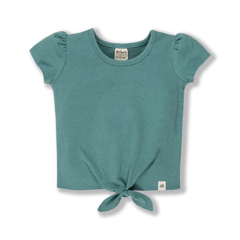 Villa Blue Short Sleeve Knot Top