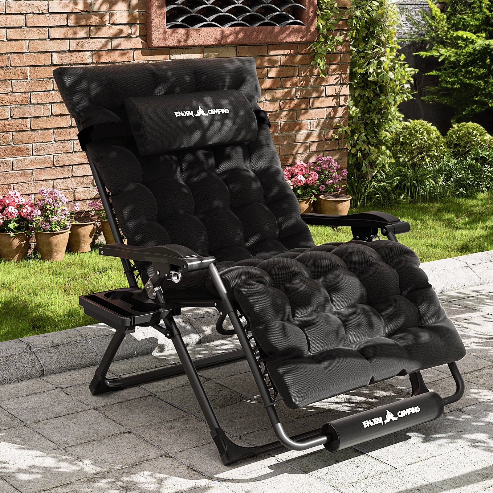- 【CUSHION FOR NECK&BODY&FEET】4” thick cushion, removable neck and feet pad make this reclining chair supper fluffy. Every part of this outdoor lounge chair will suspend your body and offer a weightless sensation.